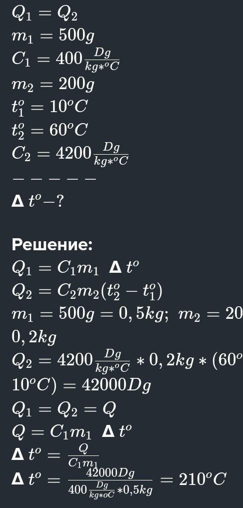 ∆t=Q/(cm)=42000Дж/(400Дж/кг°С*0,5кг)=210°С