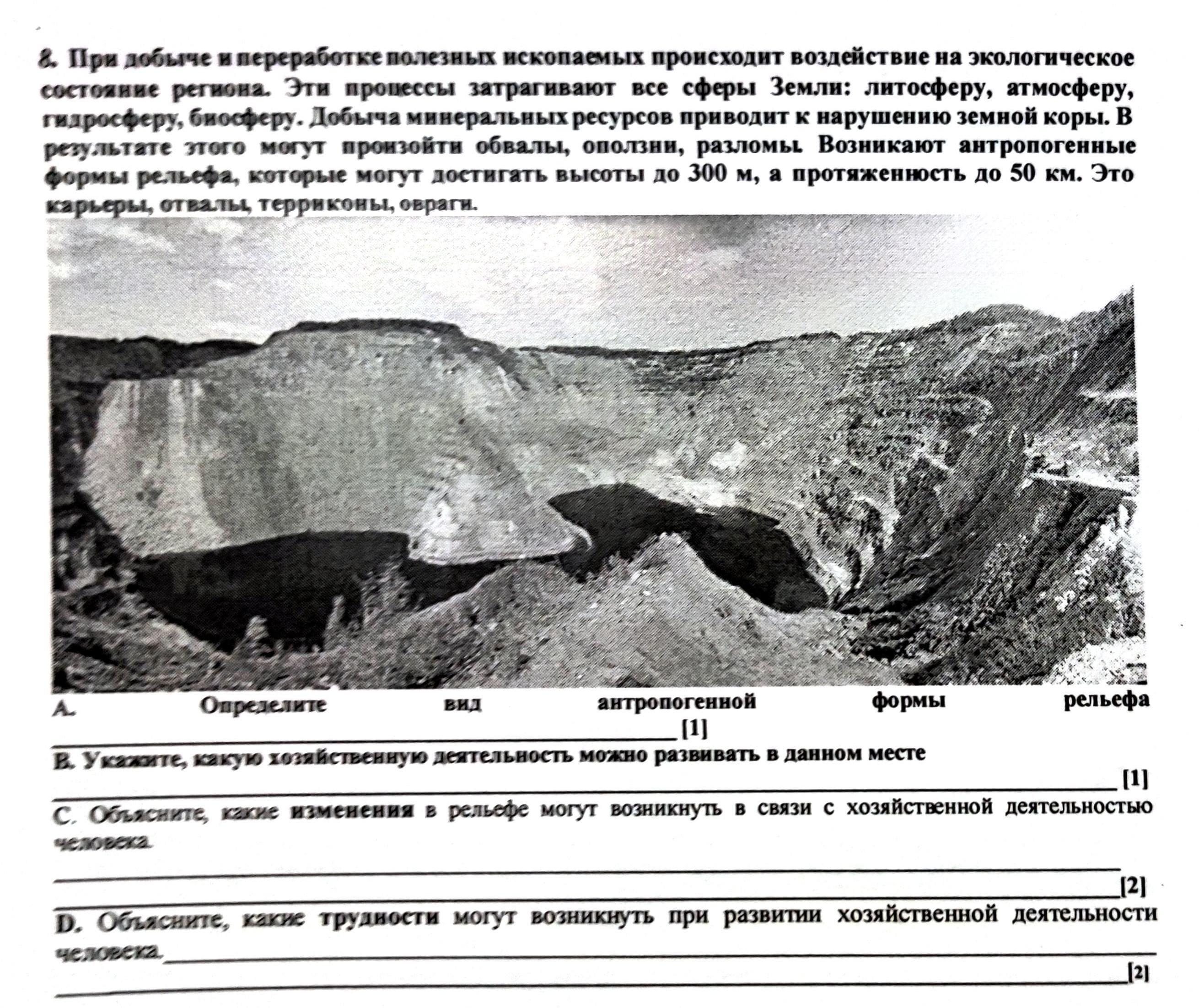 С. Могут случиться обвалы, полезные ископаемые будут добыты, образуются шахты, животные покинут места обитания.