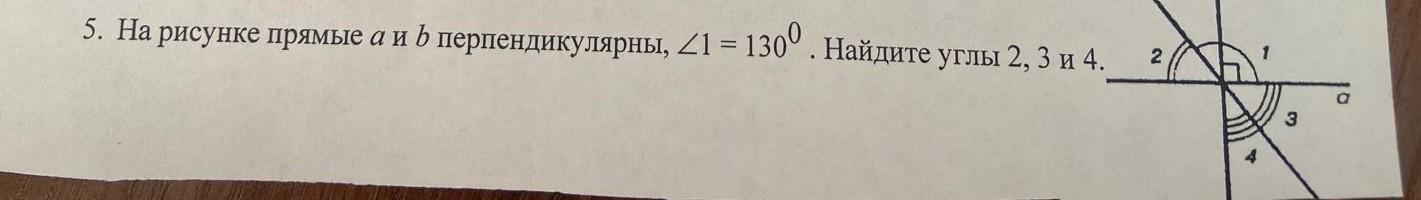 5. На рисунке прямые а и b перпендикулярны, угол 1= 130°.