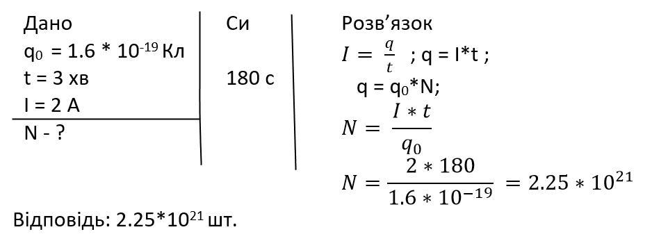 7.Скільки електронів проходять через поперечний переріз провідника за 3 хв. При силі струму 2А?