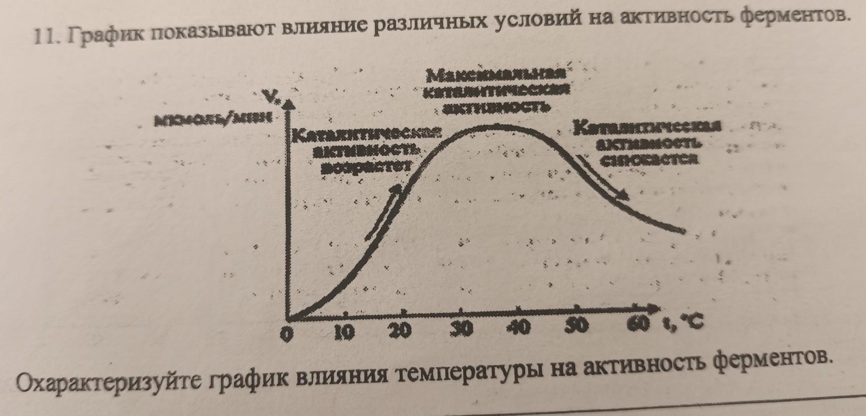 График показывают влияние различных условий на активность ферментов. Охарактеризуйте график влияния температуры на активность ферментов.