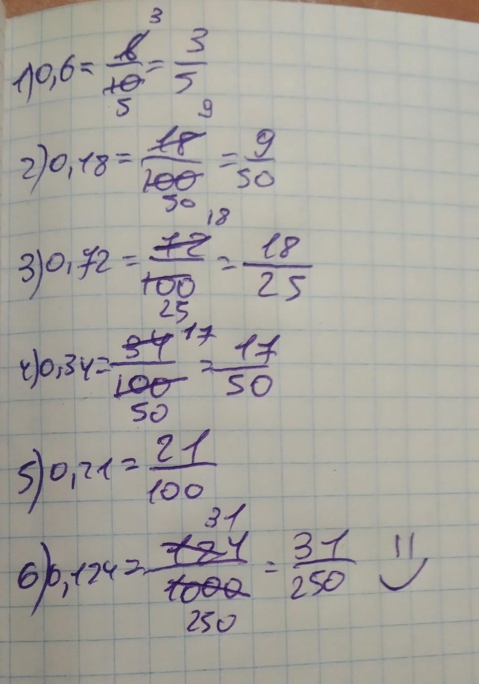 Запишіть десяткові дроби у вигляді звичайних і результат, якщо можливо, скоротіть: