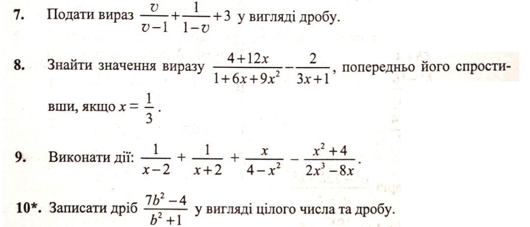 10. Записати дріб \( \frac{7b^2 - 4}{b^2 + 1} \cdot y_1 \) у вигляді цілого числа та дробу.