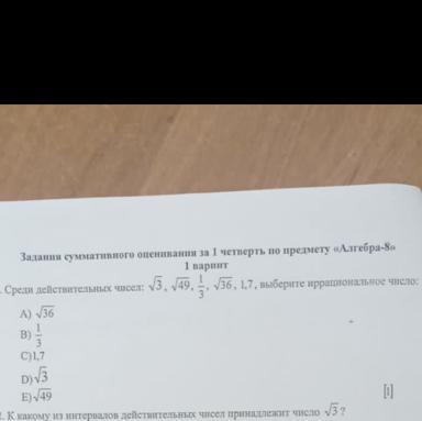√3, √49, 1/3, √/36, 1,7, выберите иррациональное число: