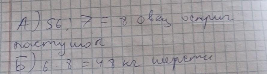1) 56/7=8 (состриг 56 кг с 8 овец)