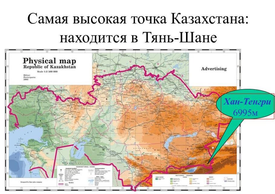 с) Определите наивысшую точку Тянь-Шаня в Казахстане.