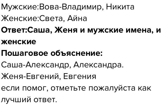5 Я могу проверить правильность изображения на диаграмме пересечения множеств. женские имена Айна Света Саша Женя Вова Никита В мужские имена помоги пожалуйста