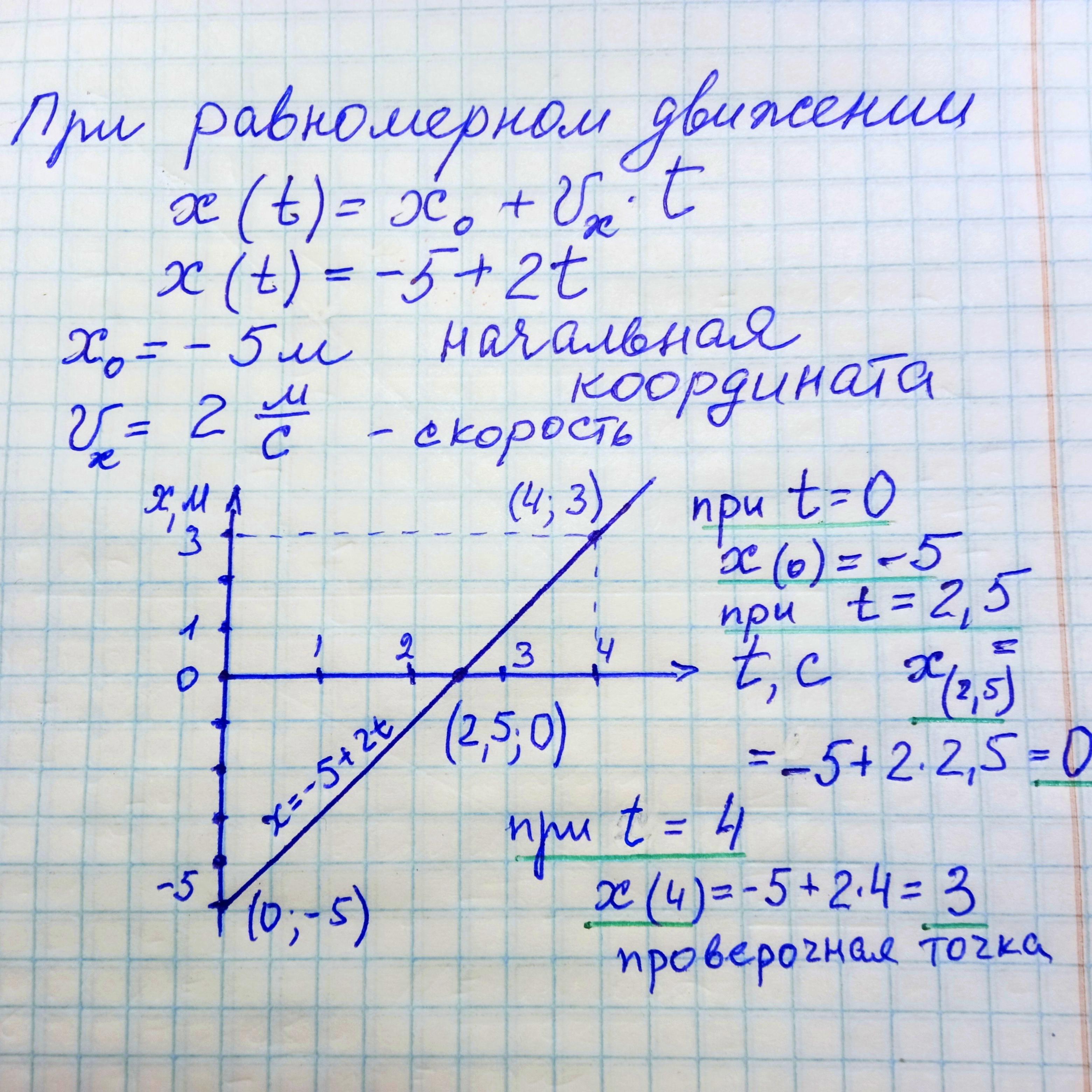 Ответ: хо=-5 м. V=2 м/с.