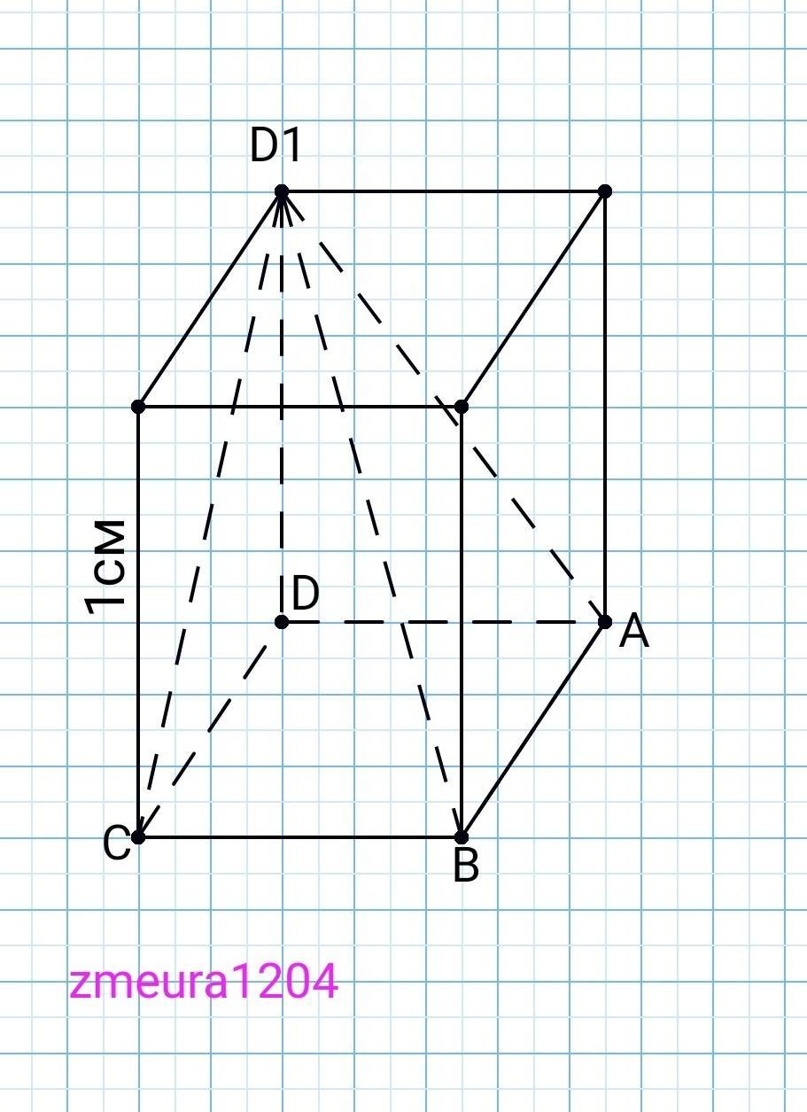 D1C=√(DD1²+CD²)=√(1²+1²)=√2см