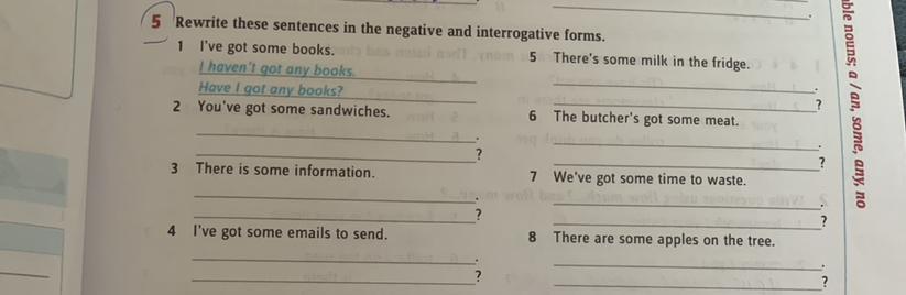 6)Negative:The butcher hasn’t got any meat.