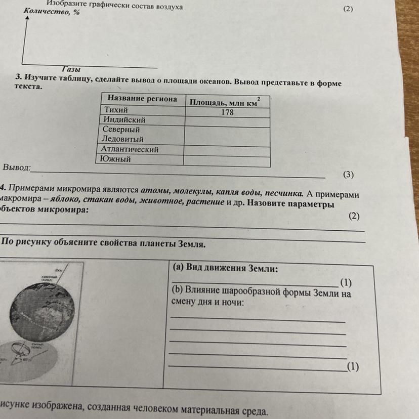 3. Изучите таблицу, сделайте вывод о площади океанов. Вывод представьте в форме