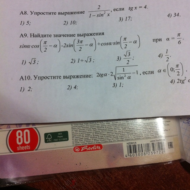Помогите пожалуйста с тригонометрией. 9 задание
