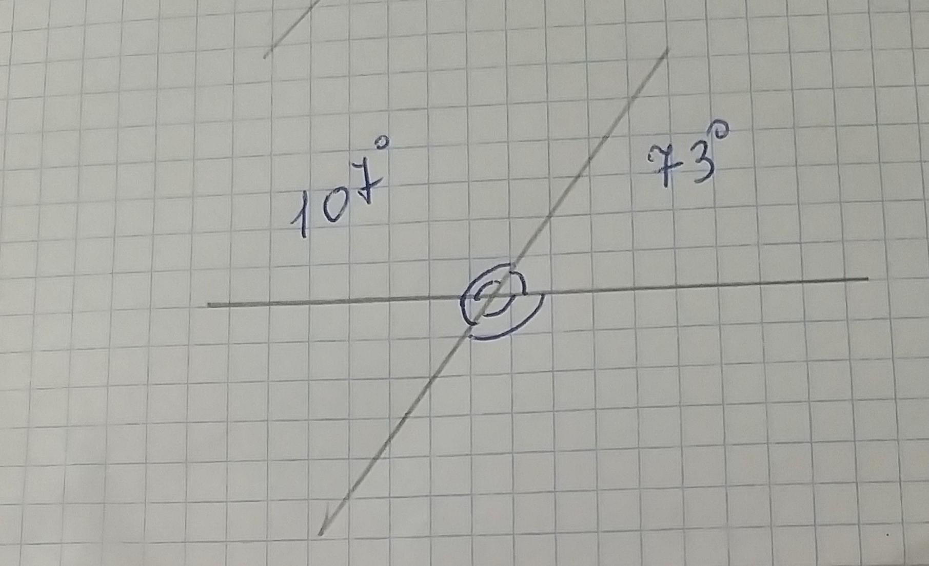 Один з кутів, утворених при перетині двох прямих, дорівнює 73˚. Знайти величини невідомих кутів.