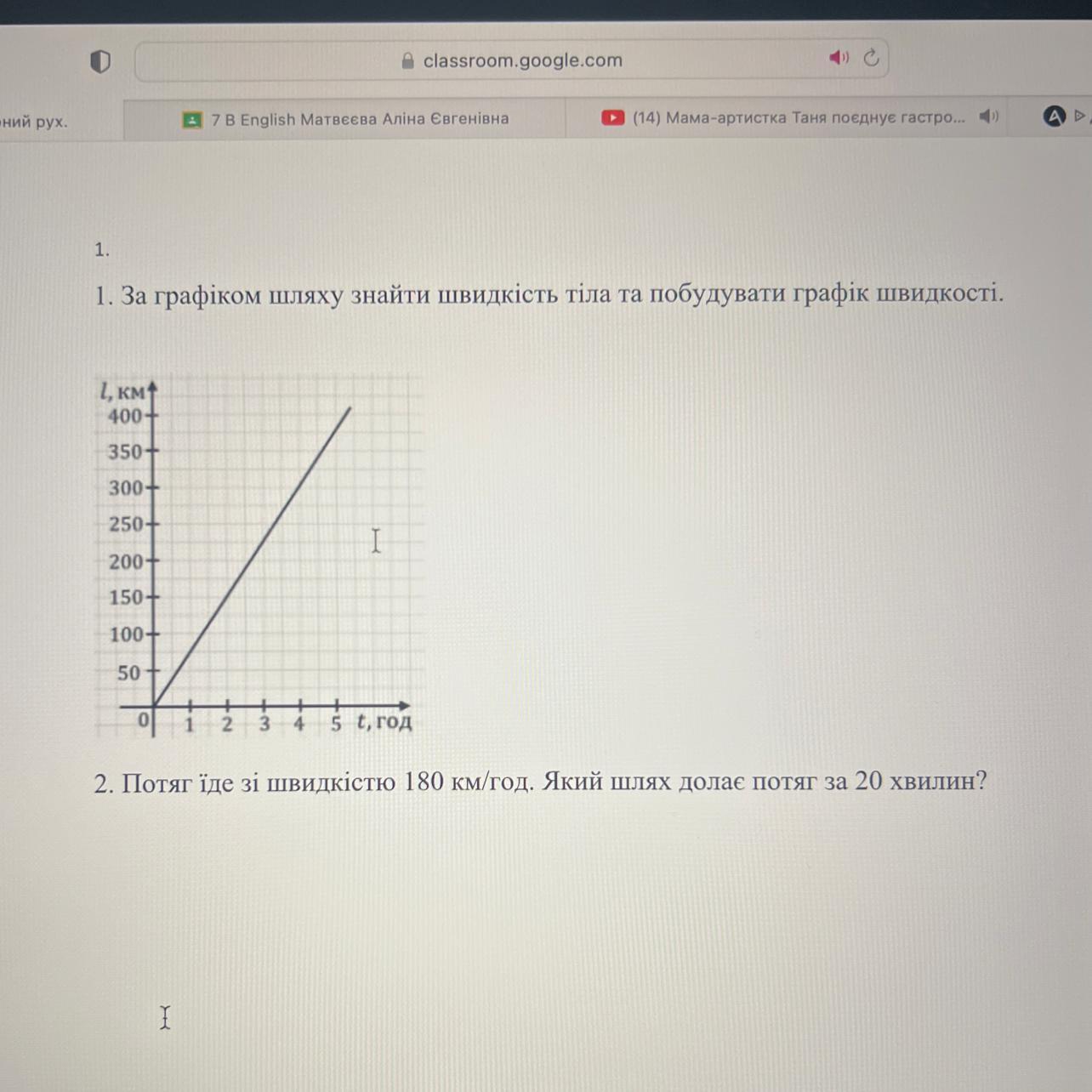 1. За графіком шляху знайти швидкість тіла та побудувати графік швидкості.