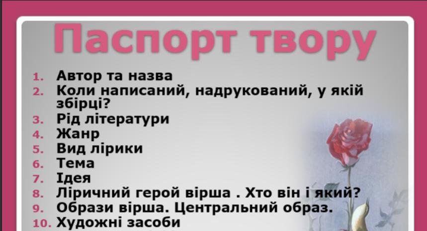 Рік написання: 1889 - спочатку пишеш це,потім тему,ідею,основну думку,потім художні засоби які на фото) надіюся допомогла) чекаю своїх 10 балів,дякую)