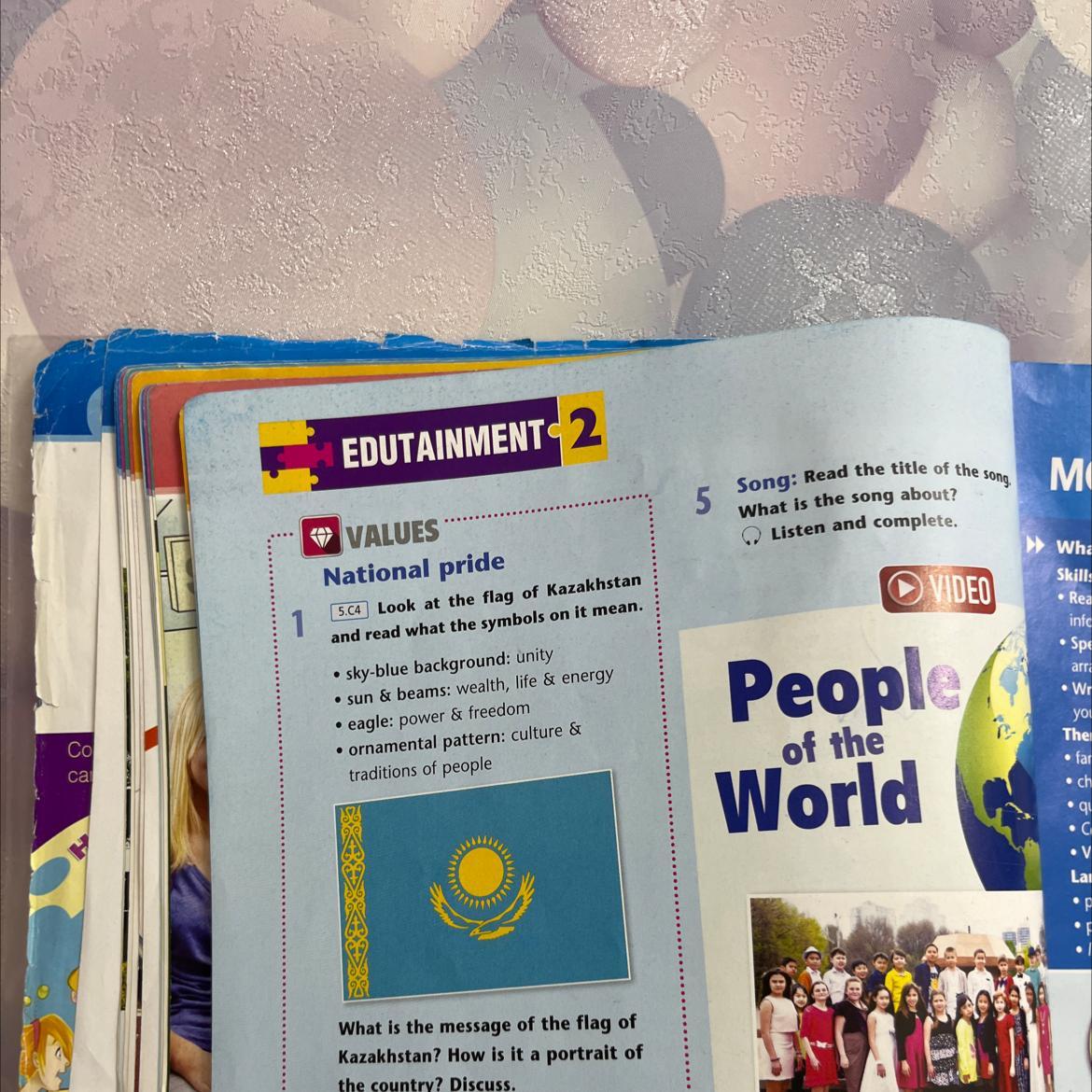 Посмотри на флаг Казахстана и прочитай что означает каждый символ