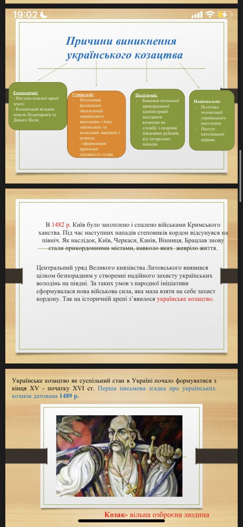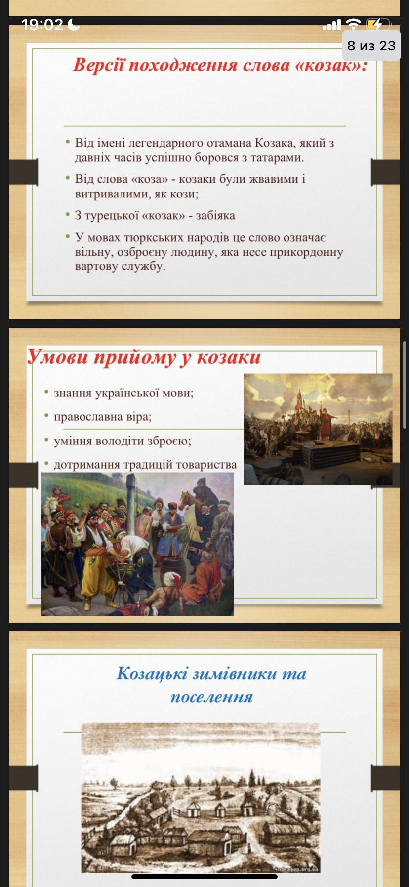 виписати причини виникнення козацтва, поняття "козак" та рік першої згадки про козаків(з презентації), зробити схему розташування споруд на території Січі