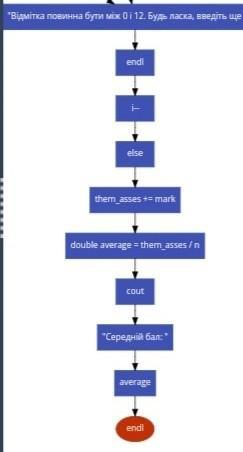 cout << "Середнiй бал: " << average << endl;