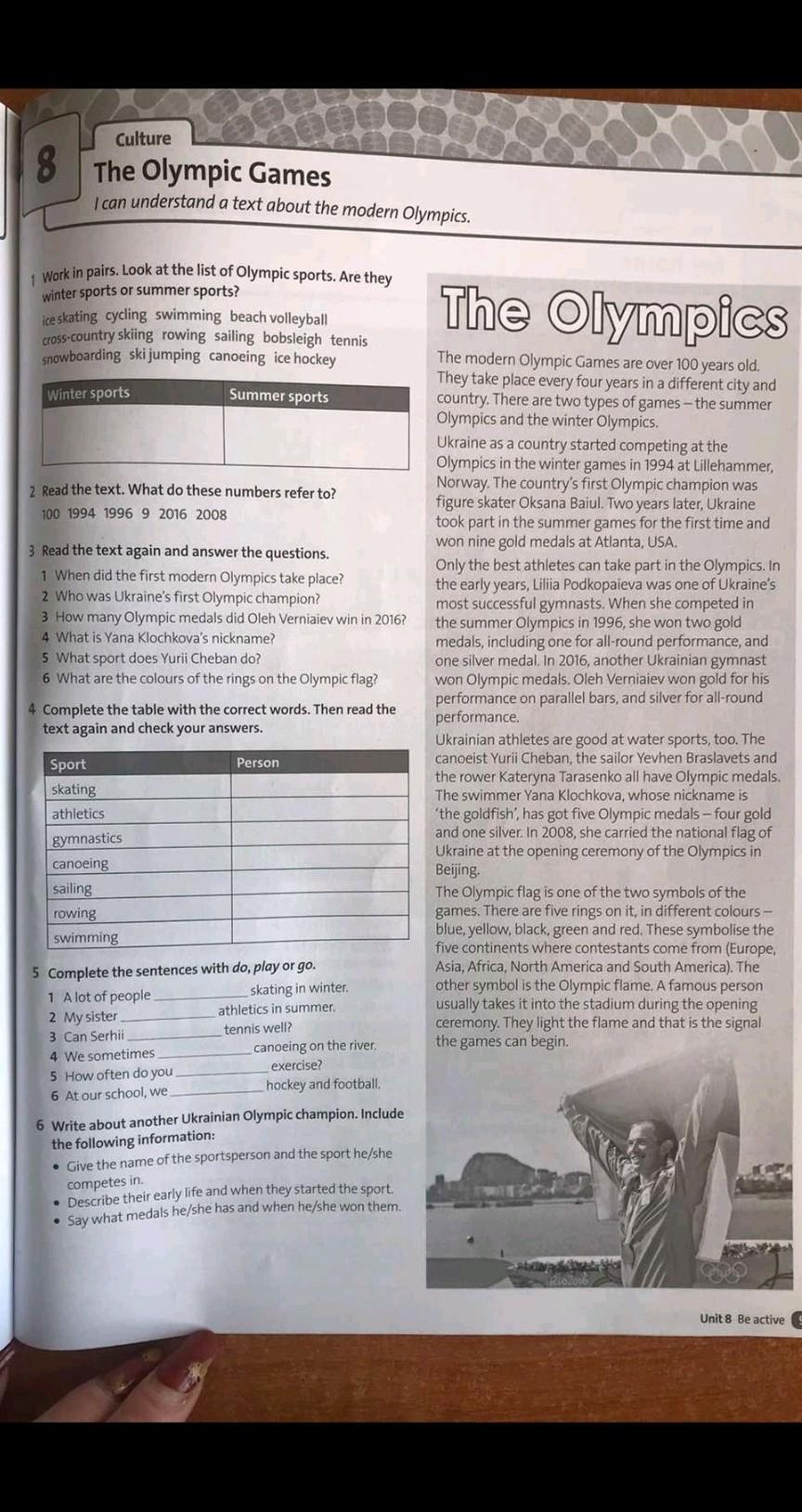 1) winter sports: ice skating, cross-country skiing, bobsleigh, snowboarding, ski jumping, ice hockey,