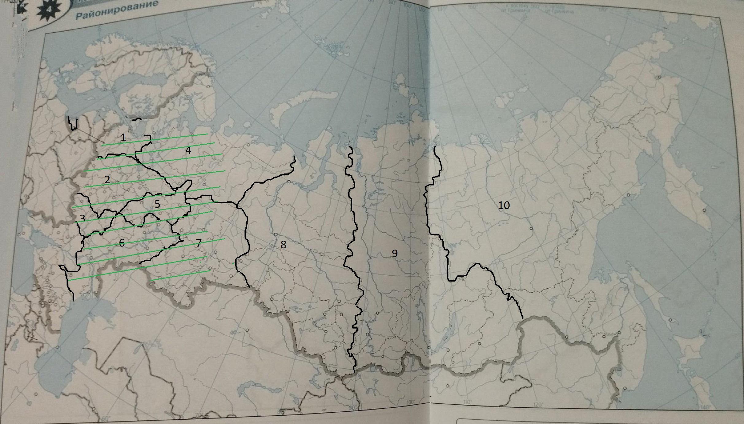 1. Проведите границы географических районов и подпишите их. Заштрихуйте те из них которые лежат в пределах природного района русской равнины.
