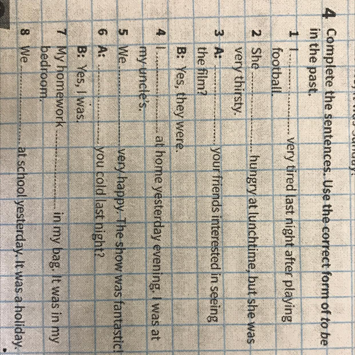 1. was 2.was 3.were 4.was 5.were 6.were 7. was 8. were