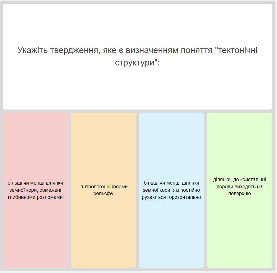 укажіть твердження яке є визначенням поняття тектонічні структури