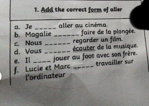 f. Lucie et Marc vont travailler sur l'ordinateur.