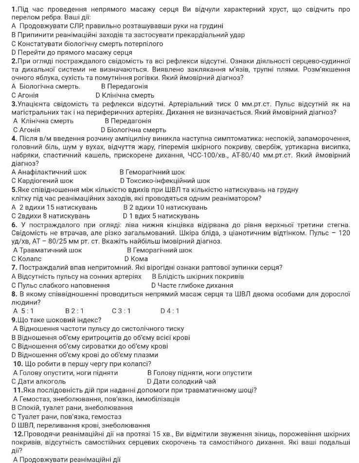 допомогите пж Тестовий контроль «Поняття про реанімацію,реанімаційні заходи, шоковий стан»