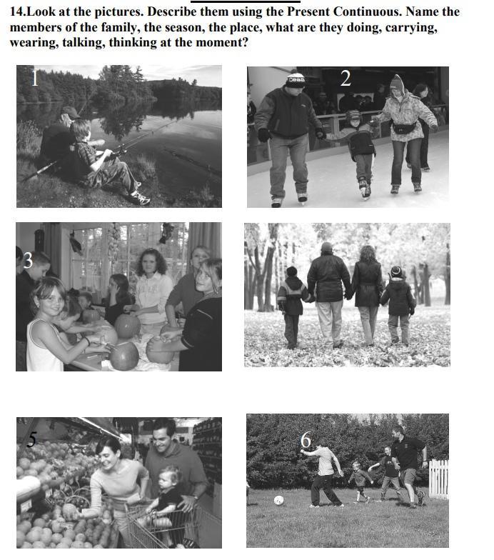They are fishing.They are skating. They are sculpting.They are walking. They are buying. They are playing football