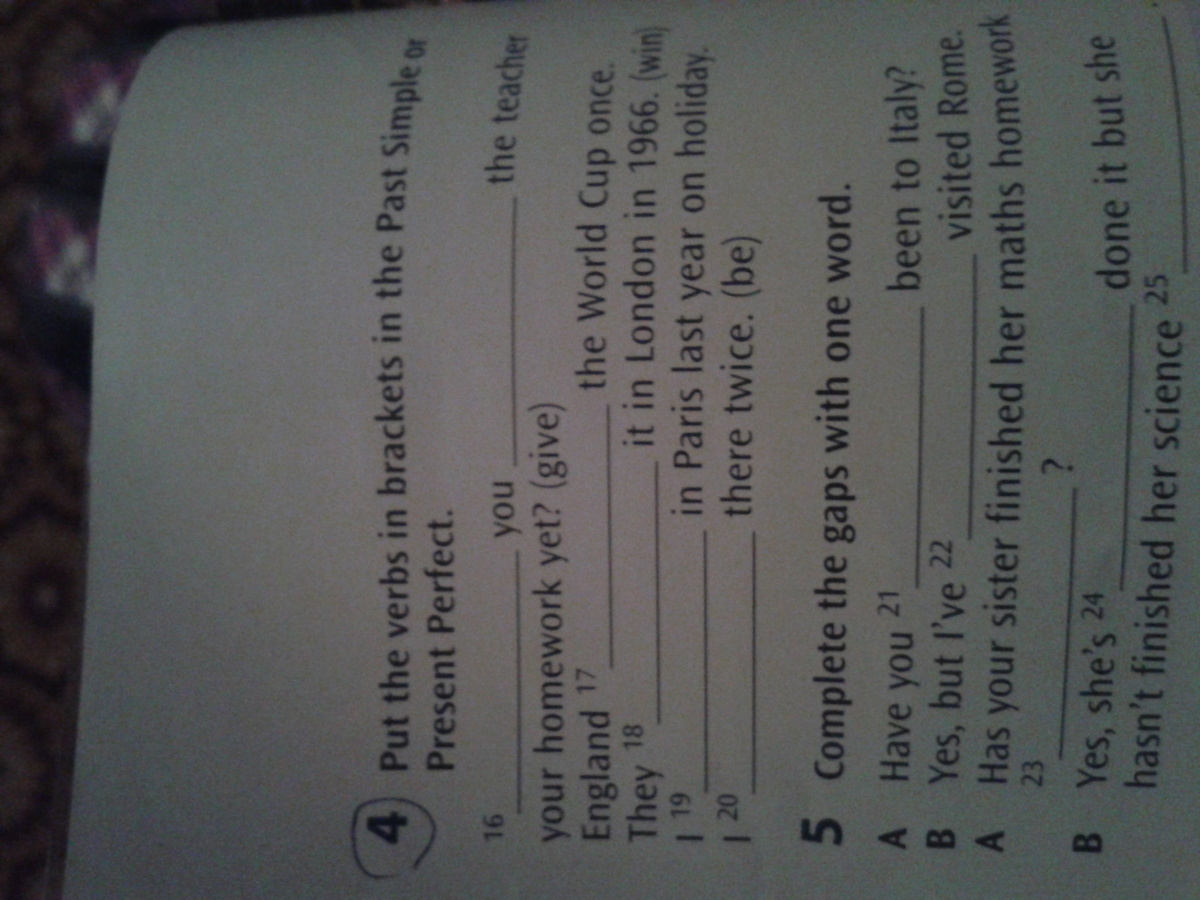 4 16 Have you given 17 has won 18 won 19 was 20 have