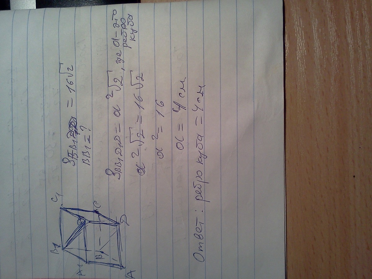 найдите ребро куба,если площадь его диагонального сечения 16корней из 2 сантиметров