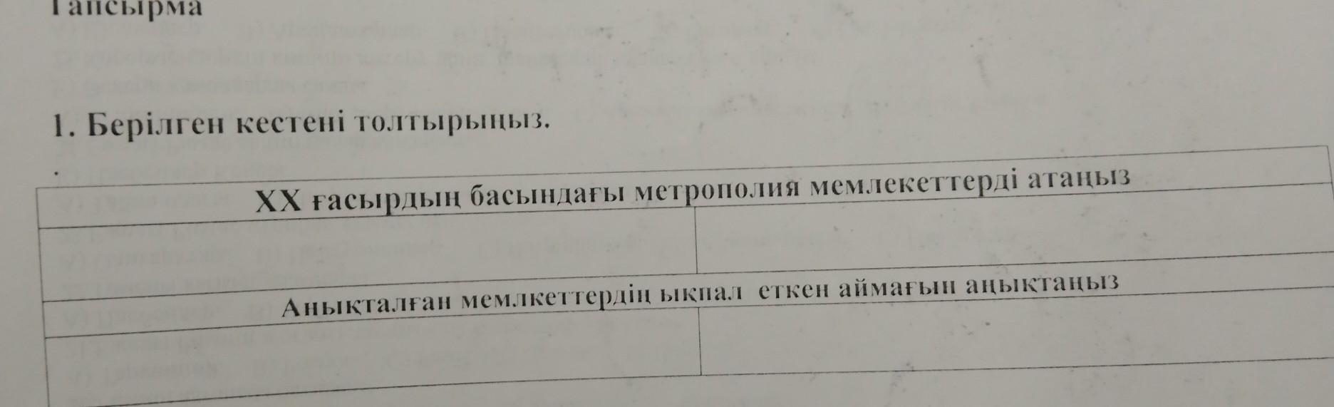 1. Берілген кестені толтырыңыз. XX ғасырдың басындағы метрополия мемлекеттерді атаныз Анықталған мемлкеттердің ықпал еткен аймағын аңықтаңыз. СРОЧНО ДАЙТЕ ОТВЕТ. 20 Баллов!!!