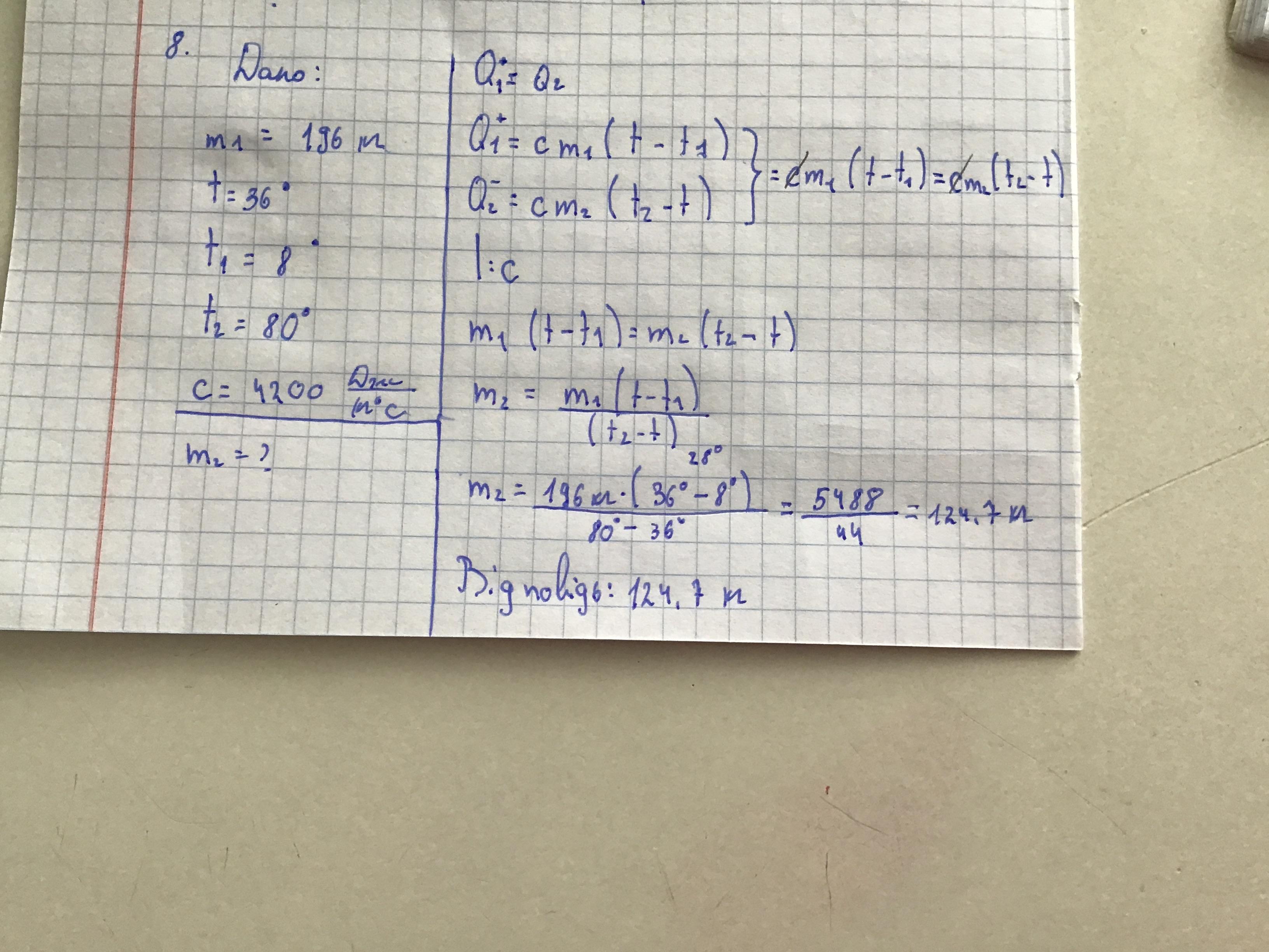 Q = 140 Дж/(кг·°С) · 0,4 кг · 80 °C = 4480 Дж