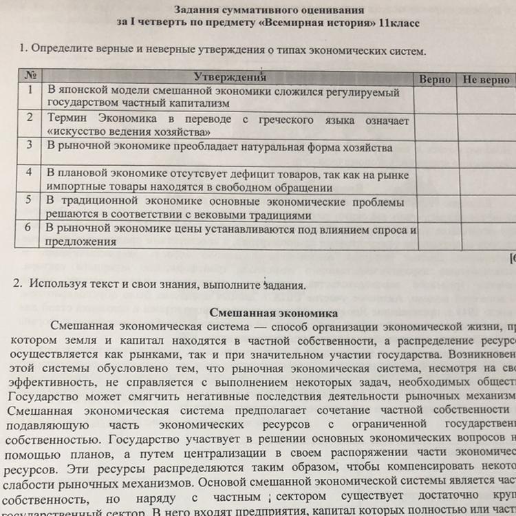 1. Определите верные и неверные утверждения о типах экономических систем.