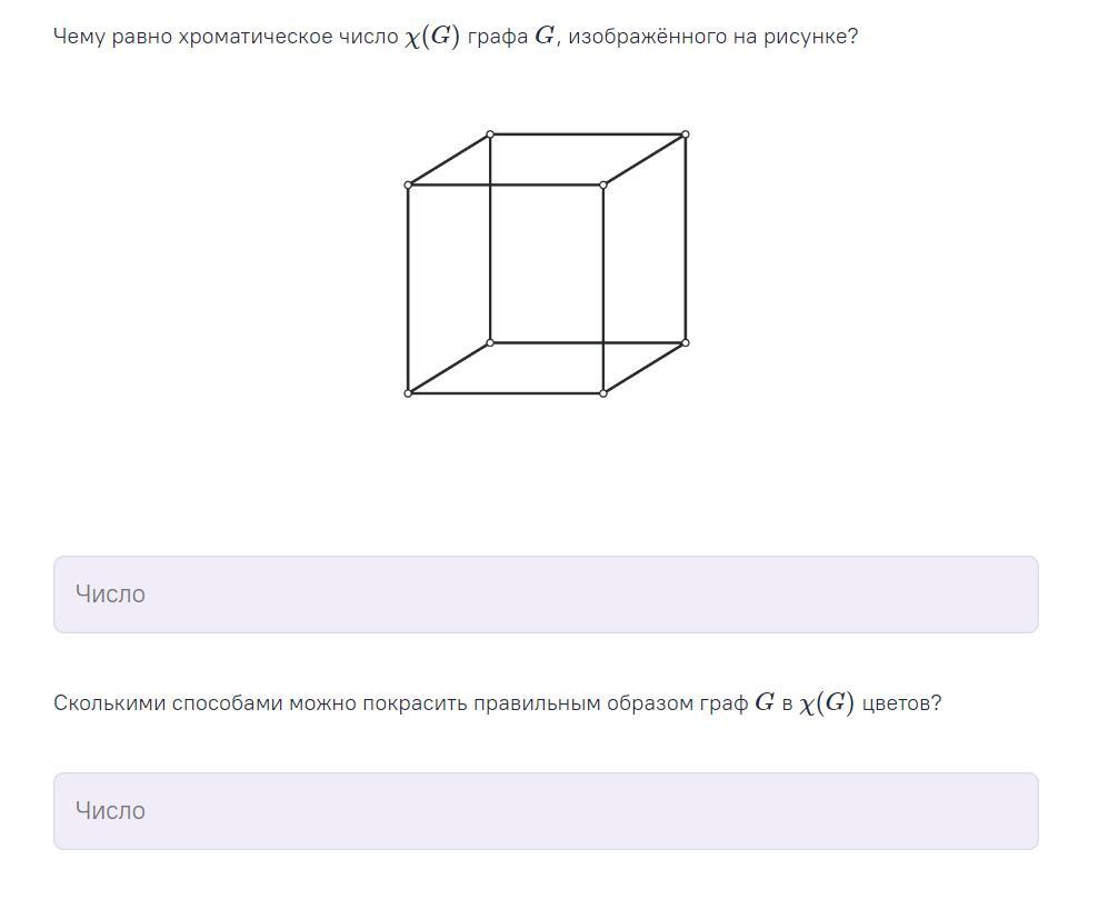 Раскраска вершин графа назвается правильной, если любые две вершины, соединённые ребром, покрашены в разные цвета. Хроматическое число графа — это наименьшее количество цветов, нужное для правильной раскраски. Хроматическое число графа G