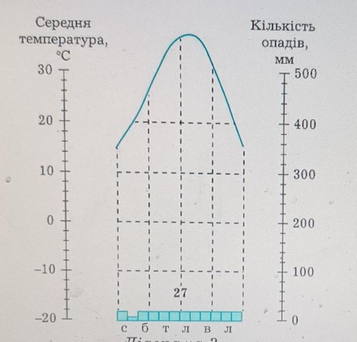 Використовуючи надану кліматодіаграму, визначте правильні тверджен щодо неї; Середня температура, °C 30 20 10 0 -10 -20 27 сбял в л Діаграма з Кількість опадів, MM I 500 400 300 200 100 0 Сума опадів за рік менше 50 мм. Середні температури повітря протягом року (+15 °, +22°) Значна амплітуда коливань температури повітря (більше 25°) Добре вираженi змiни сезонних температур