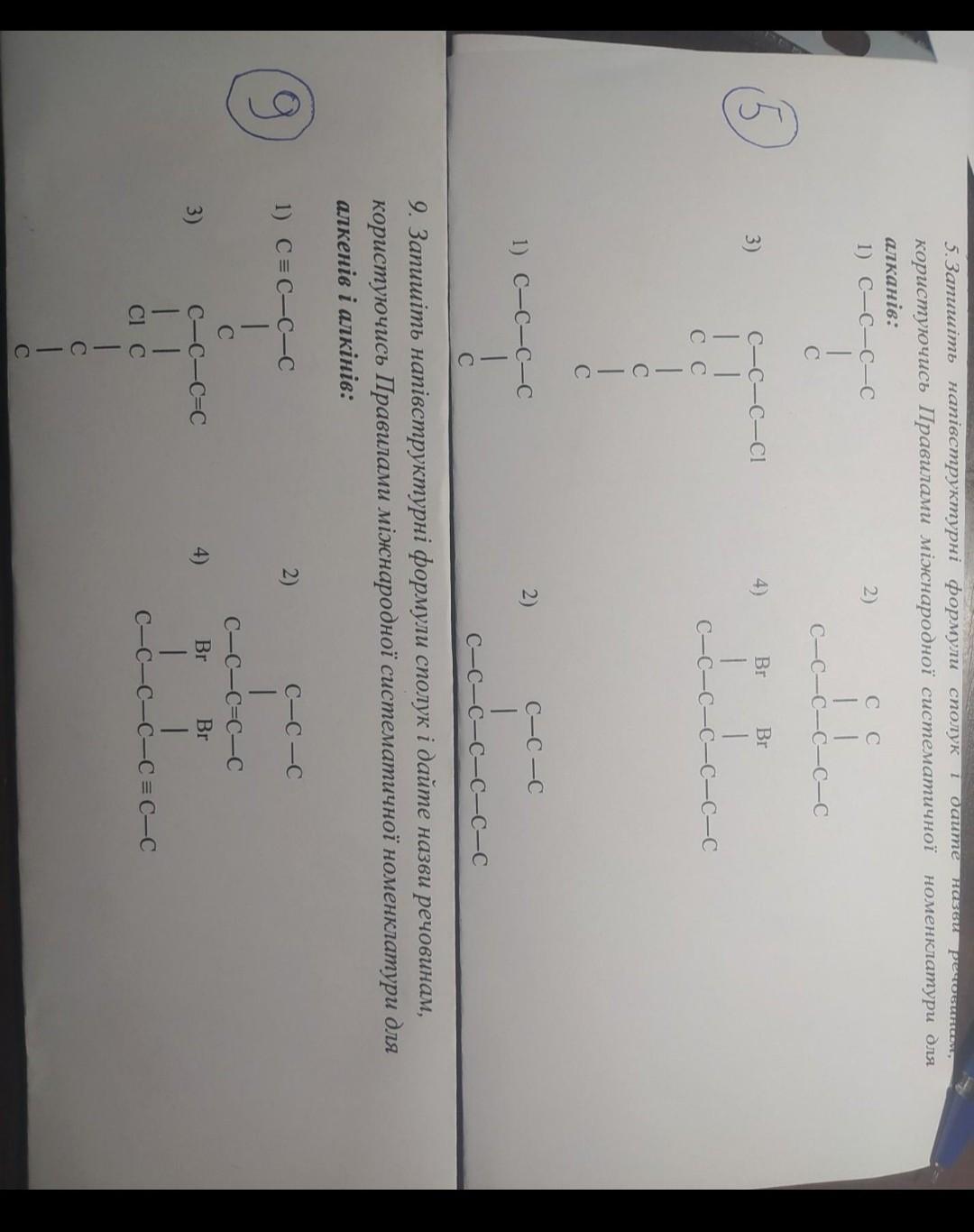 9. Запишіть напівструктурні формули сполук і дайте назви речовинам, користуючись Правилами міжнародної систематичної номенклатури для