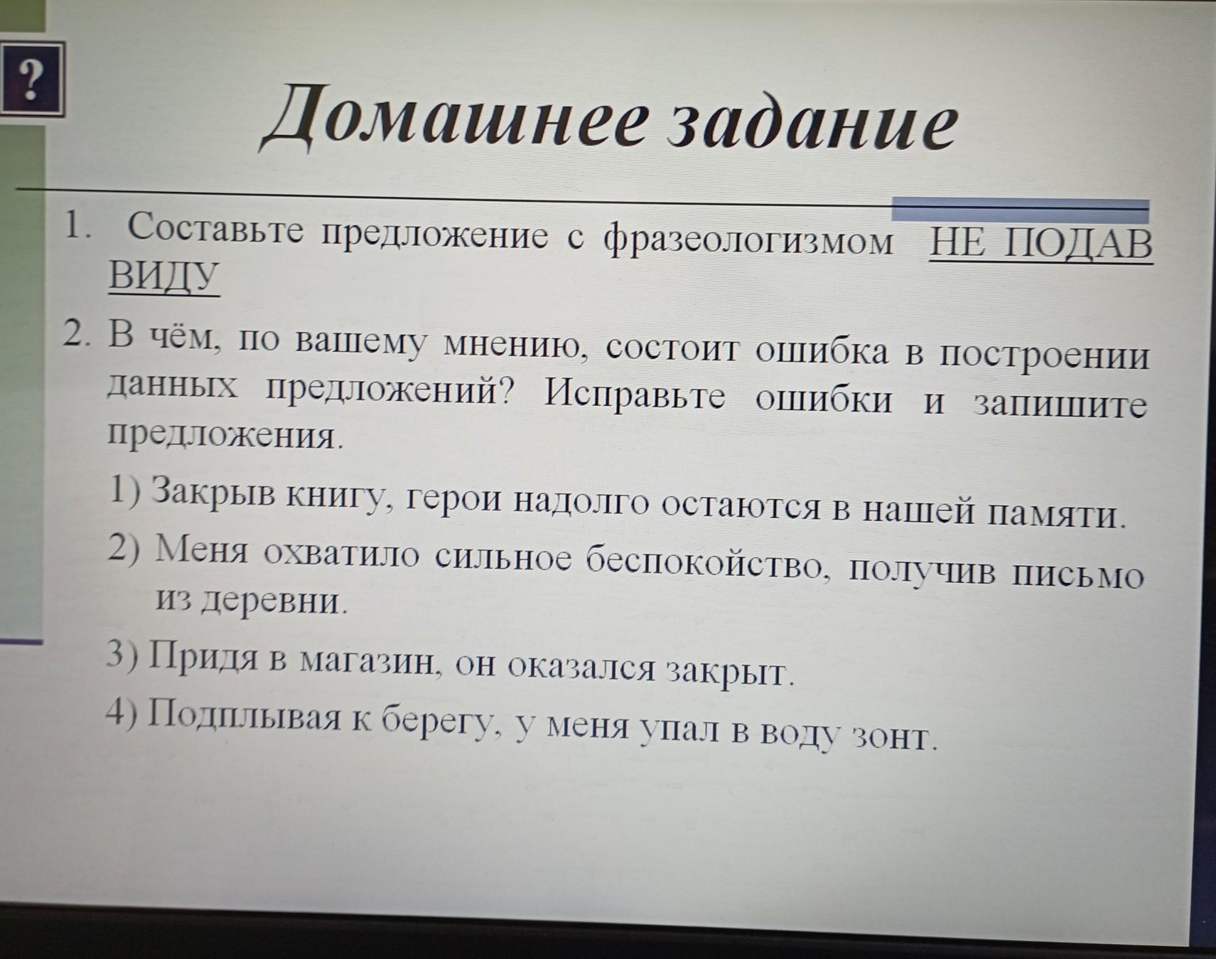 (!2) Ошибка во всех предложениях в употреблении деепричастного оборота.