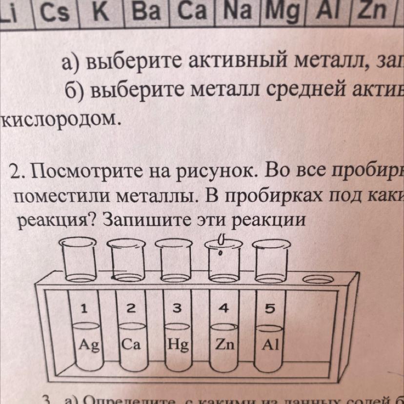 поместили металлы. В пробирках под какими номерами будет происходить химическая
