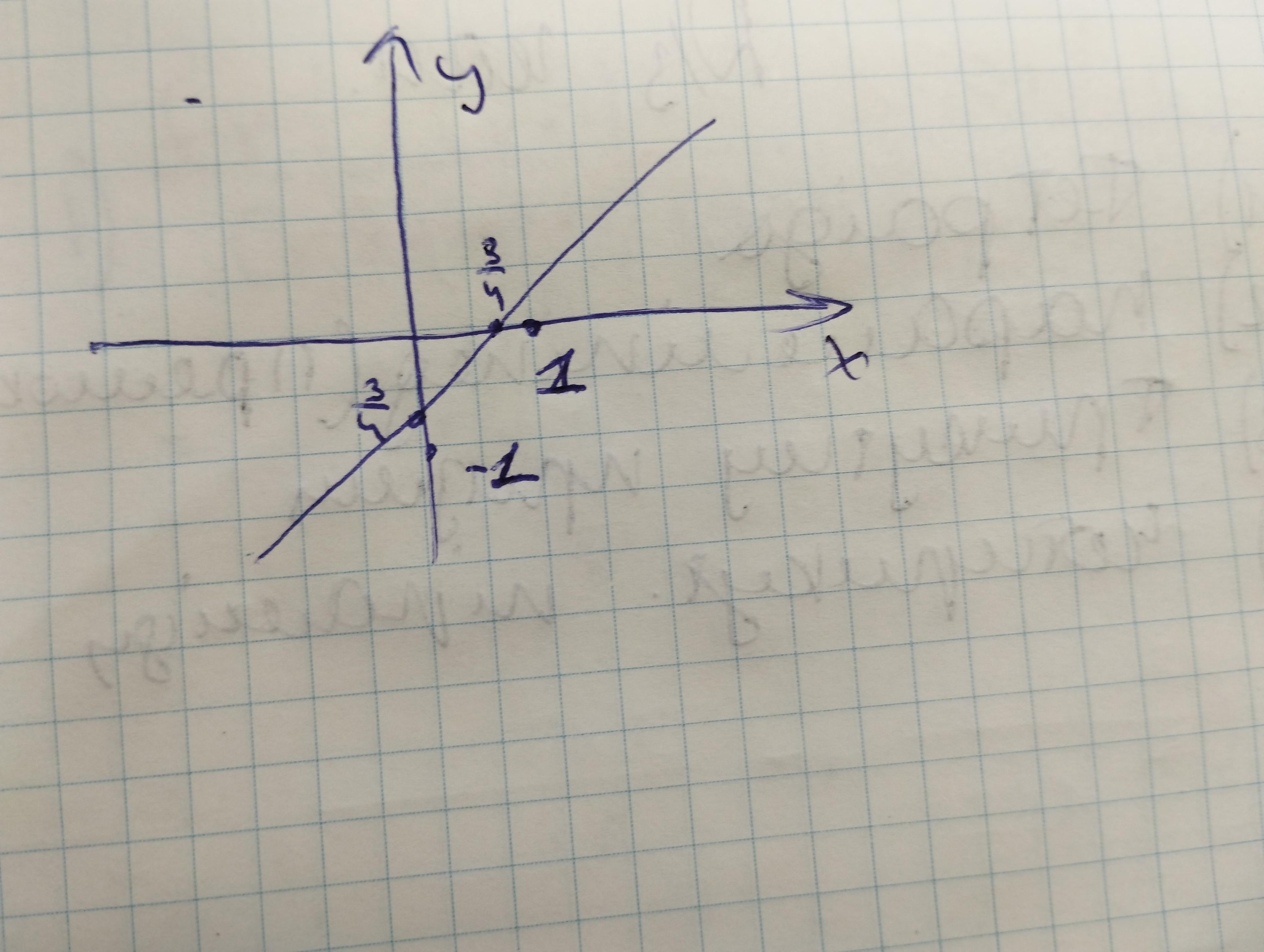 Таким чином, графік функції y = x - 3/4 є прямою лінією, яка перетинає ось y в точці (0, -3/4) та має нахил під кутом 45 градусів до вісі x.