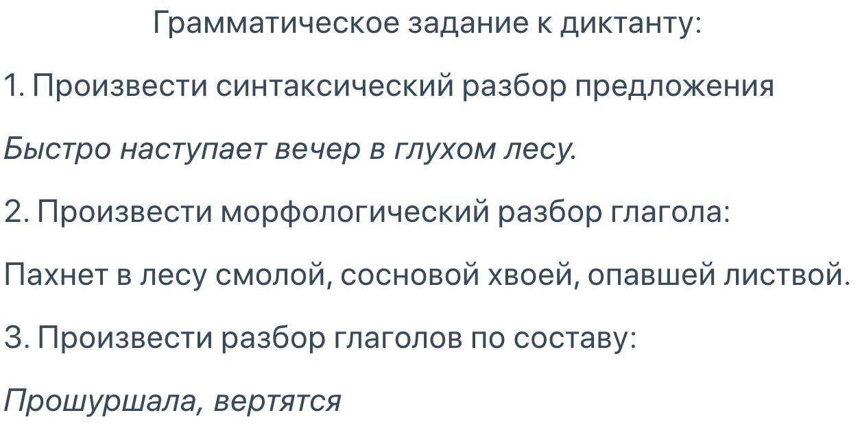 1. Синтаксический разбор предложения: "быстро наступает вечер в глухом лесу"