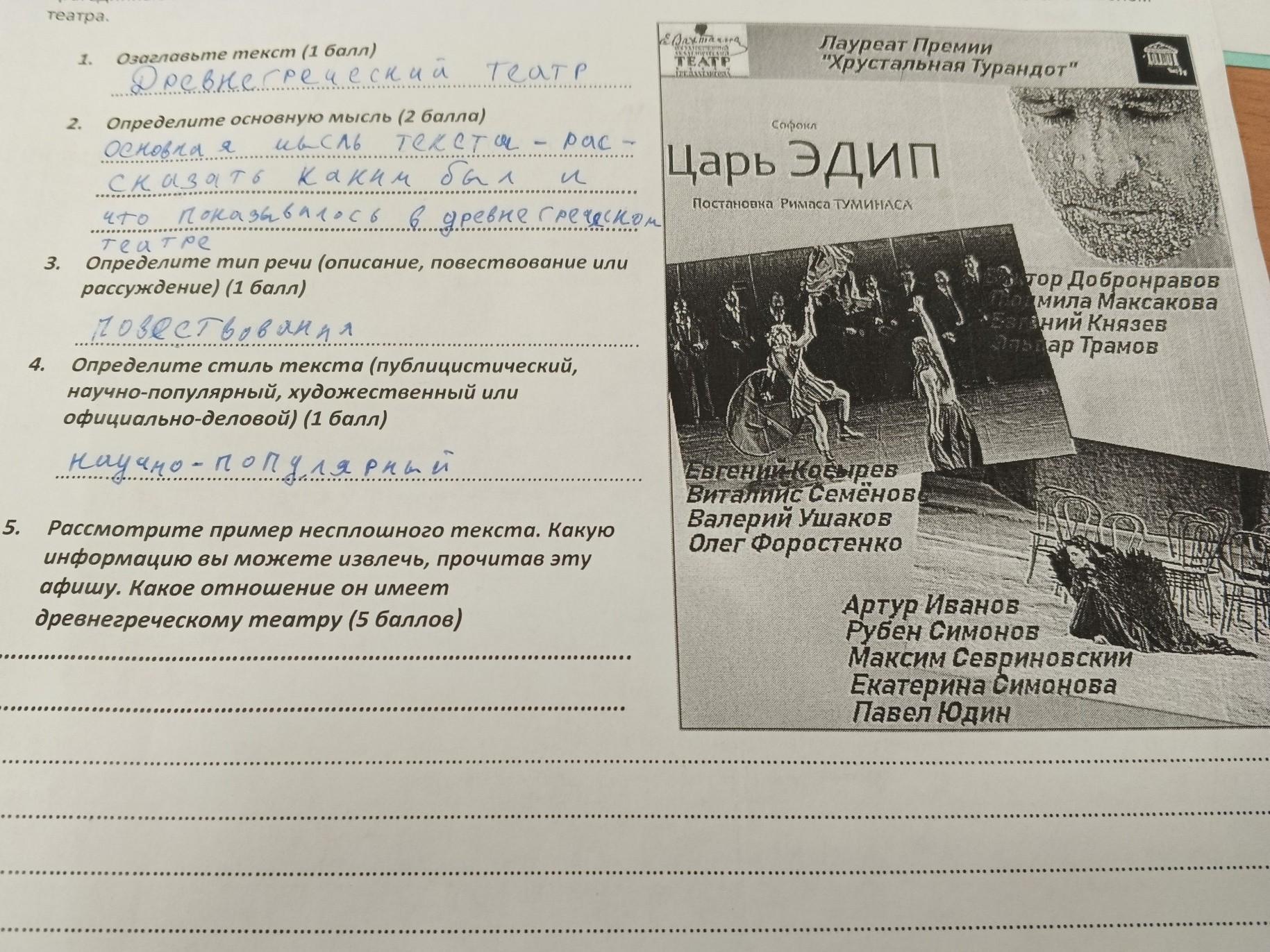 5. Рассмотрите пример несплошного текста. Какую информацию вы можете извлечь, прочитав эту афишу. Какое отношение он имеет древнегреческому театру (5 баллов)
