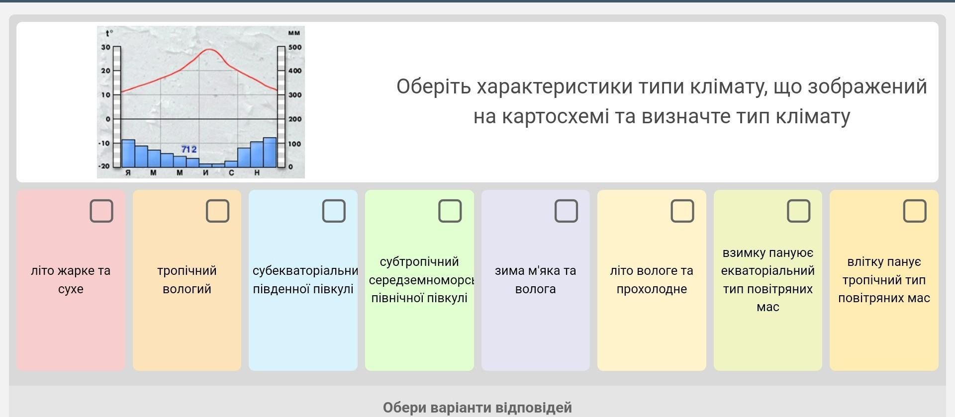 Субтропічний. Влітку панує ТПМ- сухий сезон, взимку ППМ – випадають опади, зима відносно волога, зволоження недостатнє.