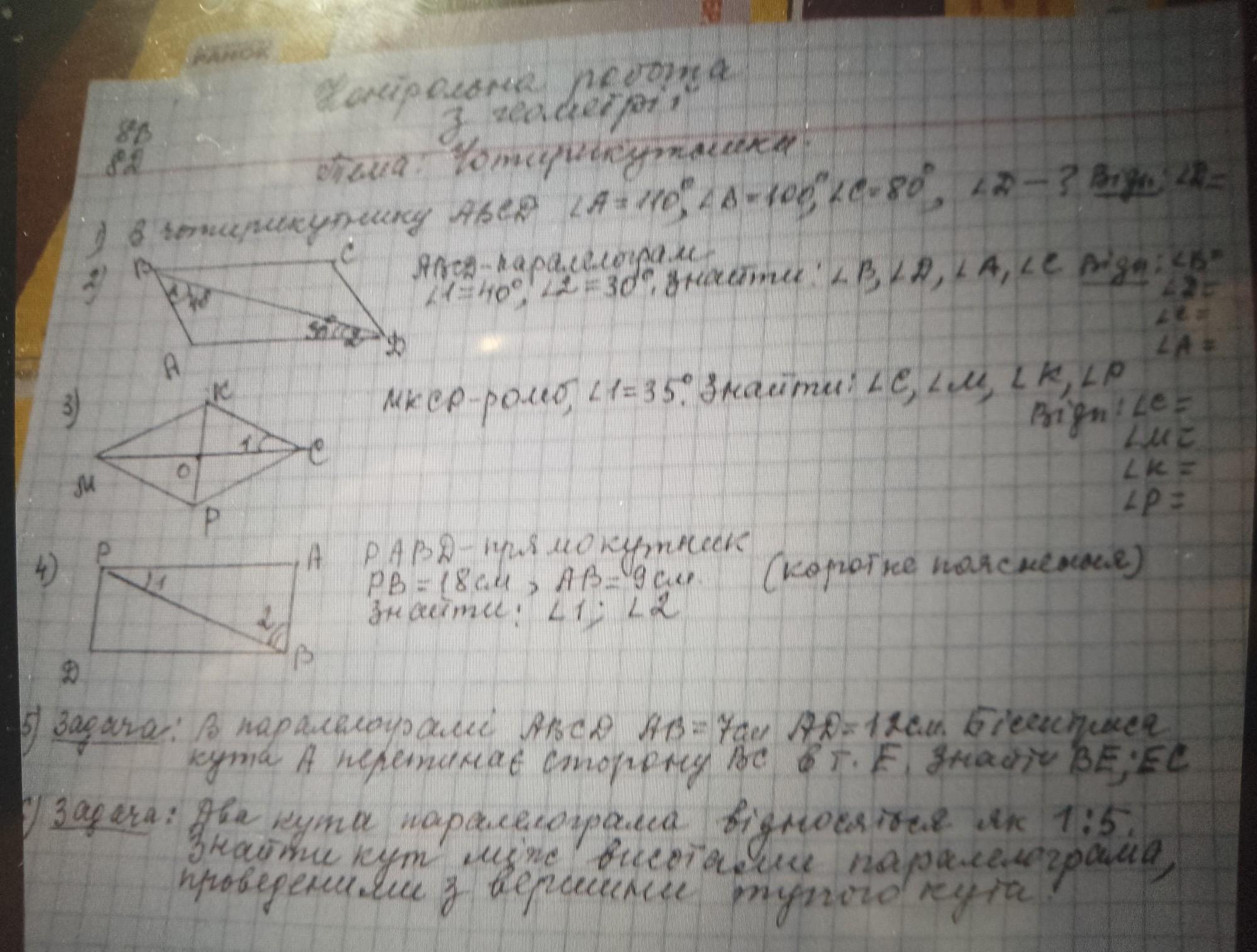 3) MKCP ромб, кут 1 = 35°. знайти кут C, кут M, кут K, кут P
