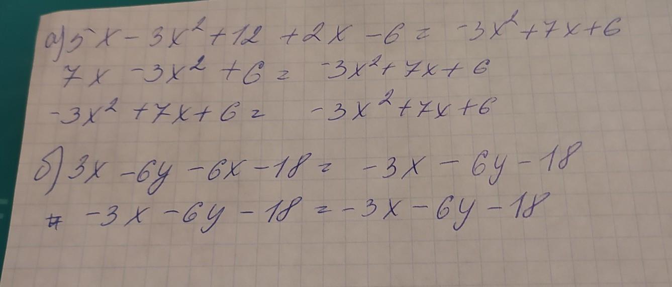 б) 3(x – 2y) – 6(x + 3) = –3(x + 2y) – 18.