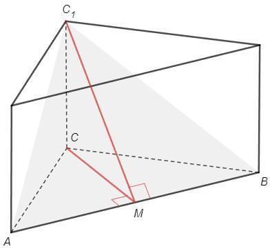 Рассмотрим △C1CM. Ребро СС1 перпендикулярно плоскости основания и любой прямой в этой плоскости, ∠С1СM=90.