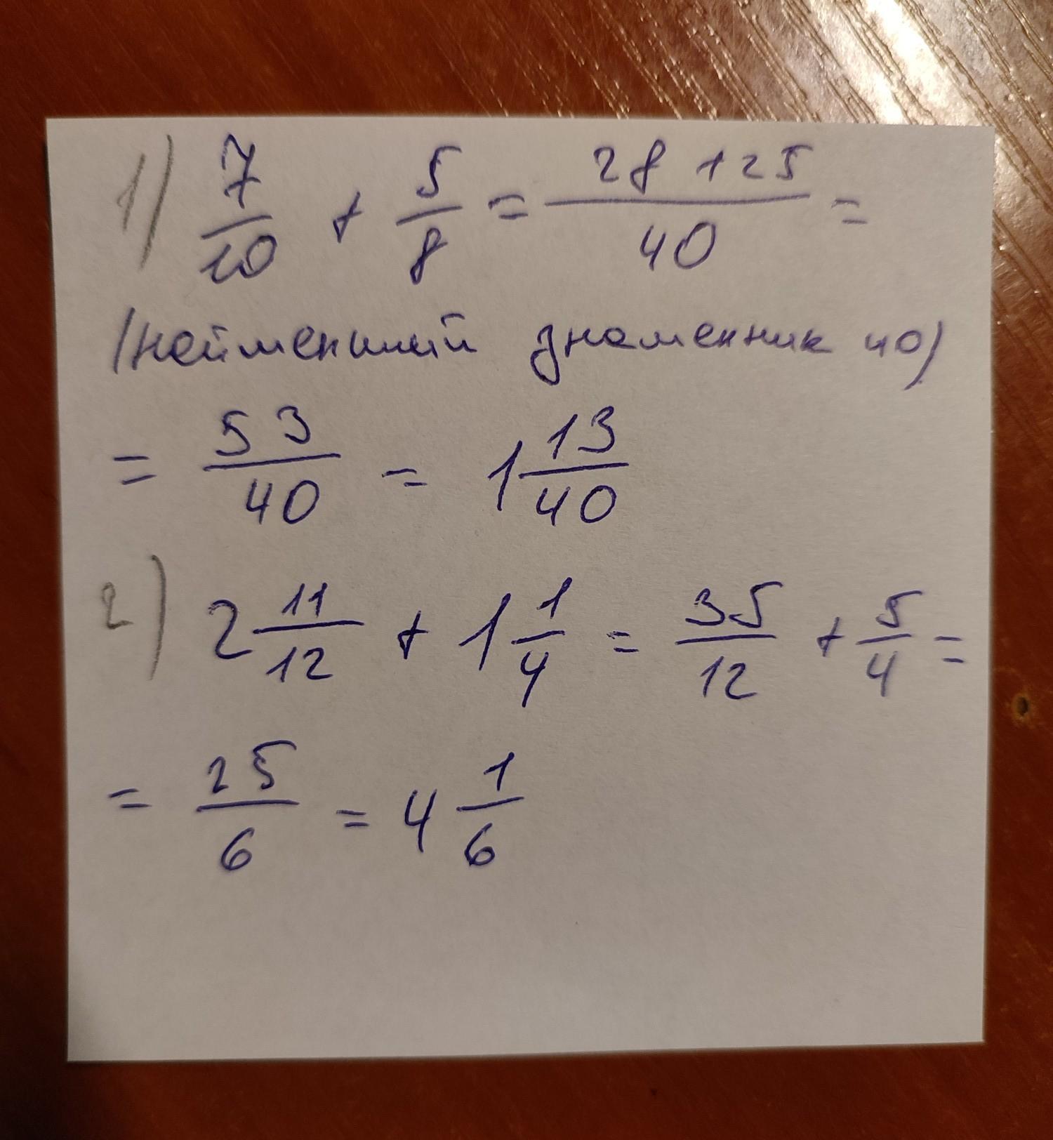 2) (2+1) + (11/12 + 1/4) = 3+ 7/6 = 3+ 1 1/6 = 3+ 1+ 1/6 = 4+ 1/6 = 4 1/6