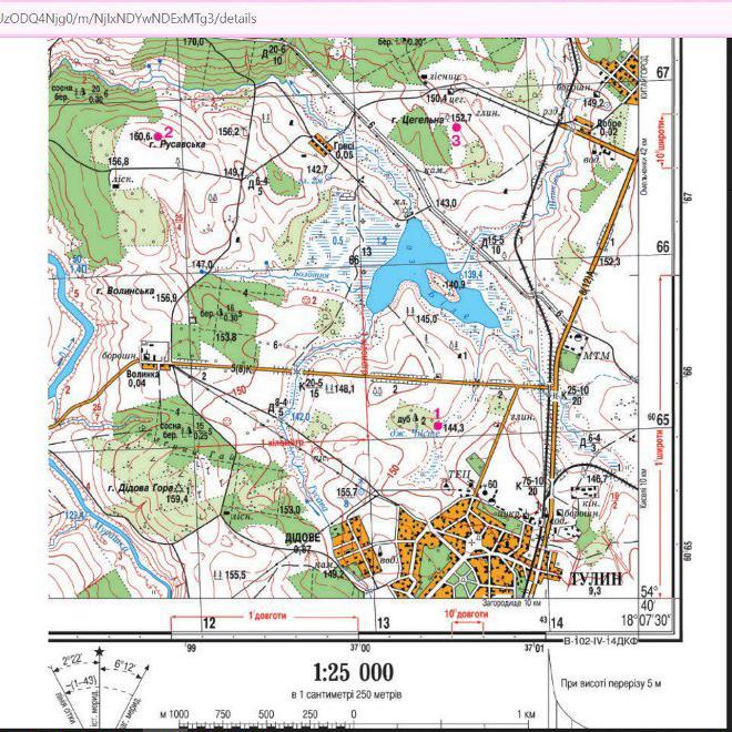 7. Визначити азимути: гора Цегельна - цегельний завод;