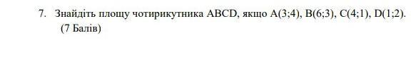 Для знаходження площі чотирикутника ABCD використовуйте формулу площі для чотирикутника, утвореного координатами вершин: