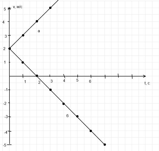 В одних и тех же координатных осях постройте графики зависимости проекции вектора скорости от времени при прямолинейном равноускоренном движении для случаев: